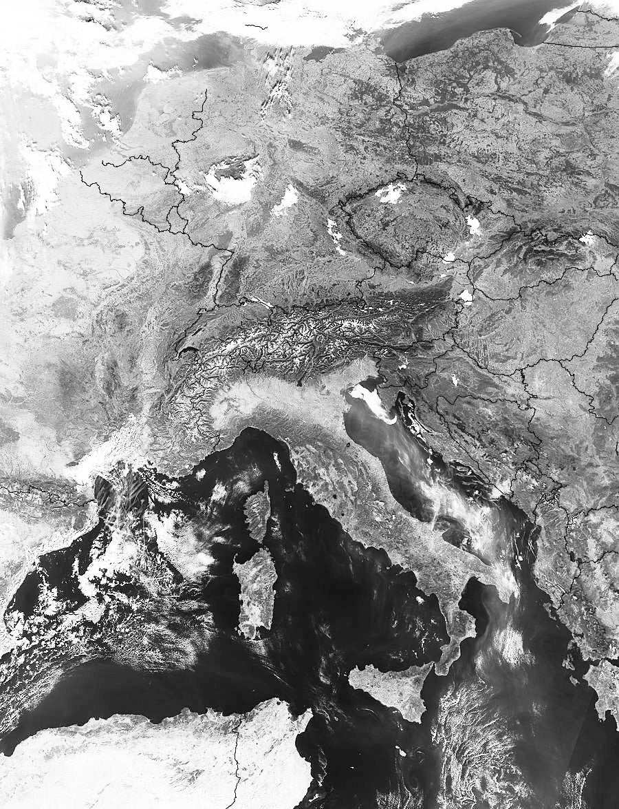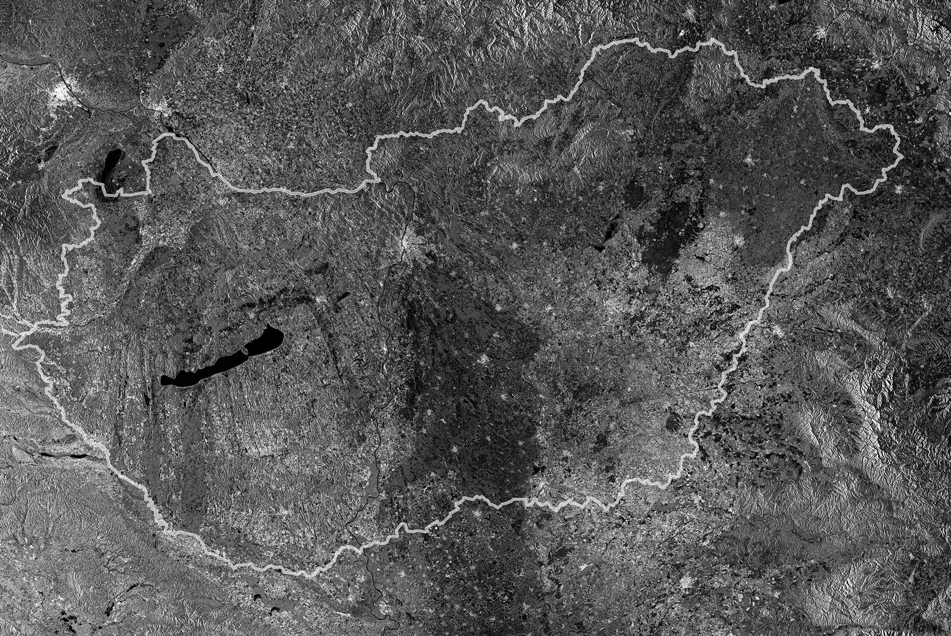 Image center: Satellite image of Hungary taken by the European Space Agency.